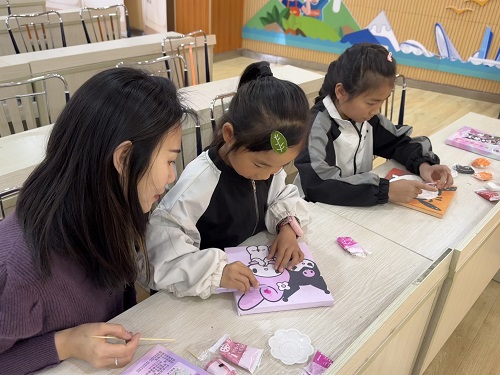 随后,志愿者现场演示纸浆画的制作流程,从材料调配、色彩运用到构图技巧,分步骤细致讲解。孩子们在志愿者指导下,亲手制作纸浆画。在此过程中,孩子们充分发挥创意,将宣纸碎片与彩色纸浆结合,完成了一幅幅独具匠心的作品。