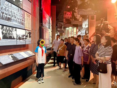 8月22日,他们身着统一服装、佩戴鲜艳红领巾,与“五老”志愿者在“三个必胜”展厅结对上岗。他们在“五老”志愿者的带领下,以青少年的视角和语言,饱含深情地为前来参观的游客讲述那段不容忘却的历史,传递珍爱和平、开创未来的信念。