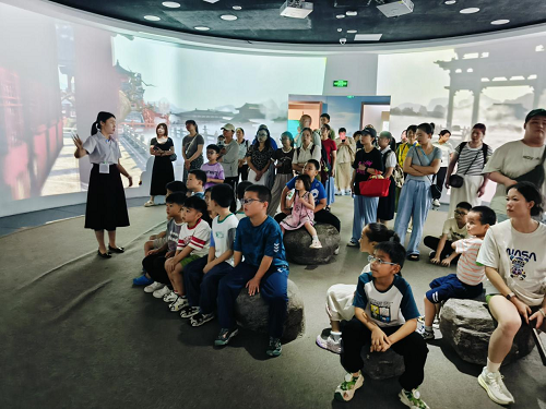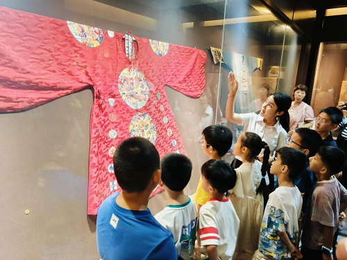 2025年8月10日上午,建邺区莫愁湖街道茶亭社区联合建邺区守护稚翼家庭服务中心组织亲子一行约40人齐聚江宁织造博物馆,探秘金陵文化,传承非遗魅力。约20位茶亭社区的儿童在家长的陪伴和专业讲解员的示范下,以“小小讲解员”视角解读江宁织造博物馆,通过沉浸式采风与讲解实践,培养自己的文化传播能力,未来用于探索及讲解茶亭社区文化。