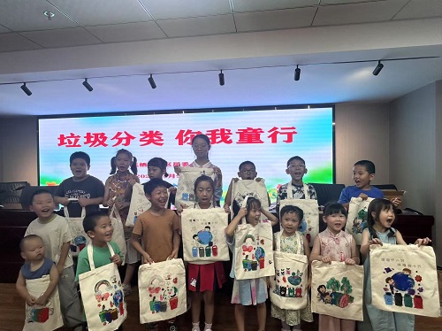 活动首先给少年儿童们播放了科普视频,垃圾是如何进行分类的,然后进行了垃圾分类知识竞答,大家都积极踊跃举手回答问题,通过趣味问答,了解垃圾分类的知识,回答正确的小朋友还获得小礼物。竞答结束后,进行手工制作活动,大家充分发挥自己的想象力,在垃圾分类包上绘画。最后,老师让小志愿者在广场上给居民发放垃圾分类宣传单。