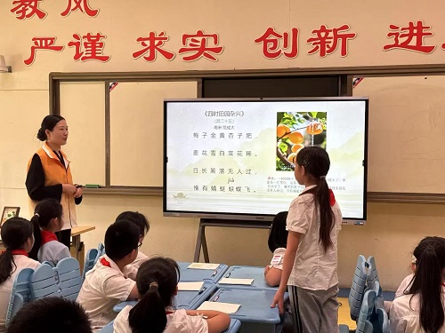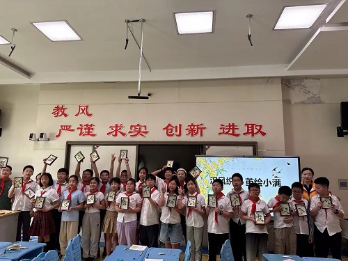接着,老师展示小满的“花信风”:月季的娇艳、忍冬的清香、石榴的火红,引得孩子们争相分享自己在生活中见过的这些花草......“梅子金黄杏子肥,麦花雪白菜花稀”,范成大的诗句瞬间将孩子们带入夏初的田园。而“祭车神”与“祭蚕神”的民俗故事更让大家听得入迷。“小白龙转动水车帮助灌溉”、“蚕神生日时人们祈求丝帛丰收”,这些充满想象力的传说,让古老的仪式变得鲜活起来。孩子们兴奋地表示:“江浙的祈蚕节真有趣!原来我们穿的丝绸背后有这么多文化!”