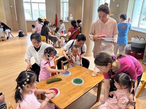 6月,我园小班化身温馨探索营,成功举办了趣味盎然的亲子蔬菜印画活动。家长与孩子携手变身“自然探索搭档”,共赴一场发现与创造的奇妙之旅
