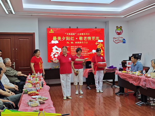 最后,志愿者们还为寿星送上了生日礼物,此次高龄老人生日会在一片欢声笑语中圆满落幕。在未来的日子里,文体社区将不断开展丰富的活动让老人“老有所乐、老有所学”,为更多老人晚年生活带来更多的色彩和欢乐!