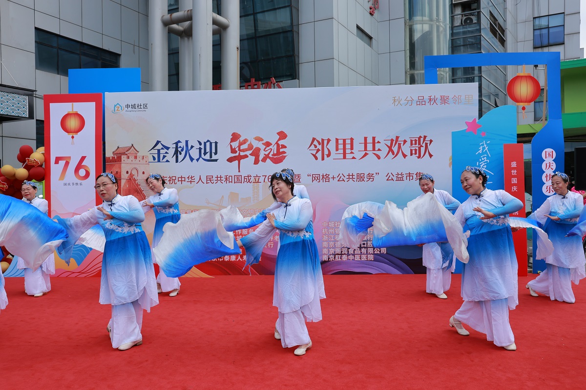 时值秋分节气,恰逢国庆中秋佳节来临之际,9月20日,建邺区沙洲街道中城社区开展“金秋迎华诞 邻里共欢歌——庆祝中华人民共和国成立76周年暨‘网格+公共服务’公益市集”主题活动,将传统节气文化与国庆庆祝相结合,通过文艺展演与便民服务相结合的形式,丰富居民精神文化生活,增强社区凝聚力,营造祥和喜庆的节日氛围。