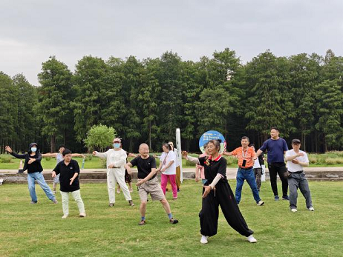 太极拳练习结束后,参与者们迎来自由活动时间。在社工与志愿者的陪同下,大家沿着池杉林平坦的步道徒步参观,穿过茂密的池杉林,打卡网红向日葵和高粱地,欣赏白鹭秘境的自然美景,呼吸清新空气,感受大自然的宁静与疗愈力量。
