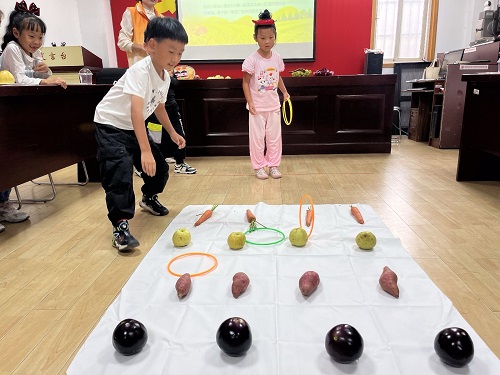 “丰收大作战,趣味套圈游戏”开始了。每位小朋友获得5个圈,在指定线外进行套圈,套中的“果实”可作为奖品带走。这一环节模拟了秋收场景,锻炼了孩子们的手眼协调能力,让他们切实体验到收获的成就感。孩子们拿着自己套中的“果实”,脸上洋溢着喜悦的笑容。