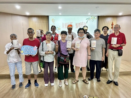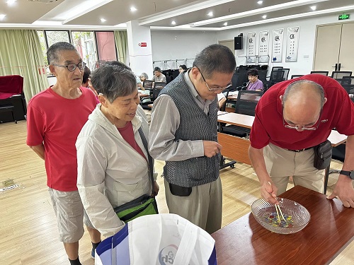 手工制作环节中,工作人员为大家分发了制作压花台灯的材料包,详细讲解制作步骤与技巧。残障人士们专注投入,有的认真挑选压花图案,有的细心粘贴装饰,社工则在旁耐心协助,手把手指导操作不便的参与者。经过一番精心制作,一盏盏兼具古风韵味与个人创意的压花台灯逐渐成型,当灯光亮起,柔和的光芒映照着大家满足的笑容,也温暖了整个活动现场。