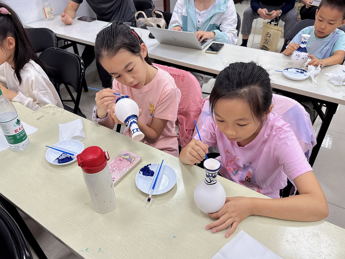 为了培养辖区小朋友的想象力和创意表达技巧,欣赏与感受青花瓷的艺术美和人文美,2025年10月12日上午,南京市建邺区沙洲街道双和园社区组织开展“青花之美”主题手工绘画活动,运用青花瓷器的色彩和装饰纹样,设计一组青花瓷瓶与青花瓷盘。