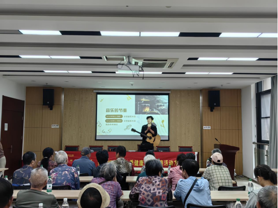 本次活动在《但愿人长久》等经典歌曲的旋律中开启。音乐疗愈老师通过舒缓音乐播放,营造了轻松愉悦的活动氛围,同时引导老人们分享自己健康养生小故事,老人们积极讲述自己的养生理念,现场充满欢声笑语。