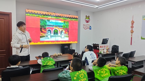 随后,孟博士深入浅出地讲解了中国古建筑的知识。他从中国传统建筑的悠久历史讲起,介绍了从庄严雄伟的宫殿到江南水乡的园林,从多姿多彩的民居到雪域高原的寺庙等不同类型建筑的特点。结合南京本地的建筑瑰宝,如朝天宫古建筑群、南京明城墙、鸡鸣寺等,孟博士让孩子们感受到传统建筑不仅是中国古代文化遗产的瑰宝,更是中华民族世代安居乐业的物质环境。孩子们在活动中积极互动,踊跃提问,展现出对传统建筑文化的浓厚兴趣。