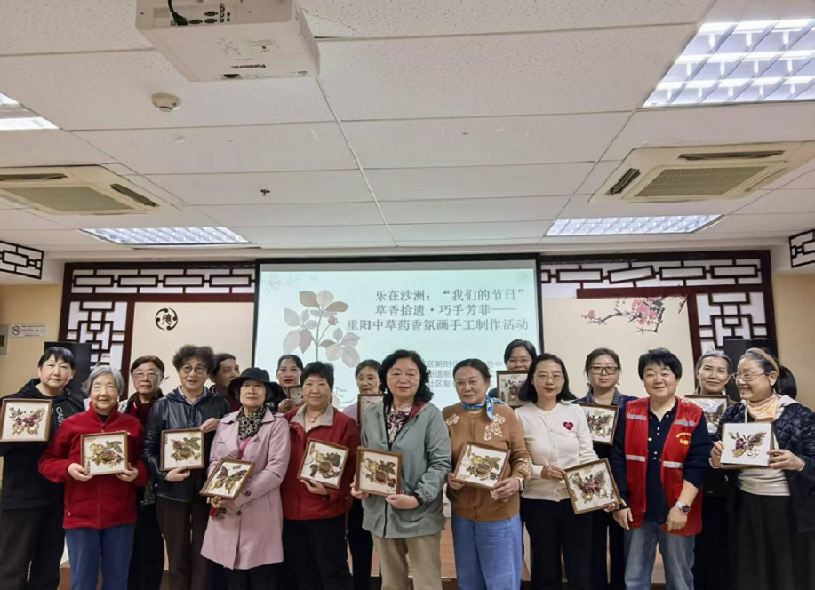 金秋送爽,丹桂飘香,为弘扬中华民族尊老敬老的优秀传统美德,进一步倡导敬老、爱老、助老的新风尚,丰富辖区老年人精神文化生活,10月24日,南京市建邺区沙洲街道中胜社区新时代文明实践站开展“我们的节日”草香拾遗?巧手芳菲——重阳中草药香氛画手工制作活动,吸引了辖区不少老年人踊跃参与。活动以传统中草药为载体,通过艺术创作与文化科普相结合的形式,为居民带来一场沉浸式的非遗文化体验。
