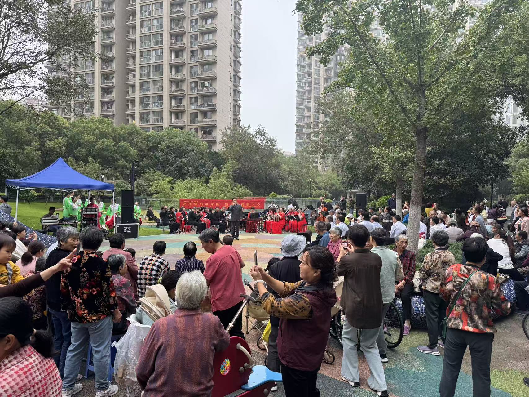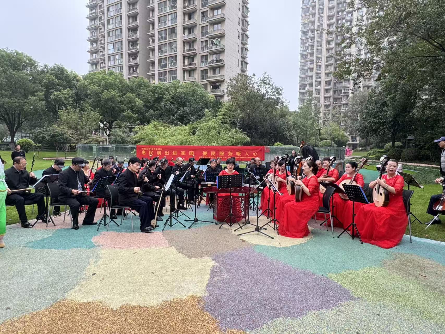 活动现场分为两大核心区域,文艺汇演与便民服务同步推进,满足居民多元需求。在文艺演出区,悠扬的民乐率先拉开序幕,民乐合奏《江苏民歌联奏》用熟悉的旋律勾起在场居民的乡土情怀,《洲岛花开遍地红》则以明快的节奏展现出蓬勃生机;随后,合唱节目温情脉脉、笛子独奏清亮婉转、二胡演奏韵味悠长,一个个精彩节目轮番登场,赢得台下掌声与喝彩不断。演出在大型歌舞《珊瑚颂》恢弘优美的旋律中落下帷幕,家园文艺团老师们的精湛表演为整场汇演画上圆满句号。