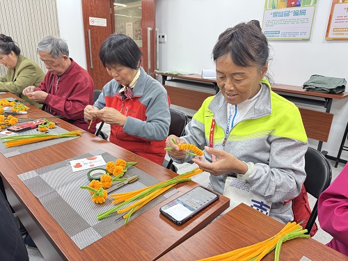 制作柿柿如意手工盆栽无疑是本次活动最具创意和趣味的部分。柿子,因其“事事如意”的美好寓意,成为了霜降时节的吉祥物。社区工作人员提前准备好了制作手工盆栽的各种材料,包括扭扭棒、小巧的花盆、装饰品等。在工作人员的指导下,居民们充分发挥自己的想象力和创造力,亲手制作出了一个个独一无二的柿柿如意手工盆栽。这些盆栽不仅美观,更承载着居民们对生活的热爱和对未来的美好祝愿。大家在制作过程中相互交流、相互学习,增进了邻里之间的感情,也丰富了社区的文化生活。