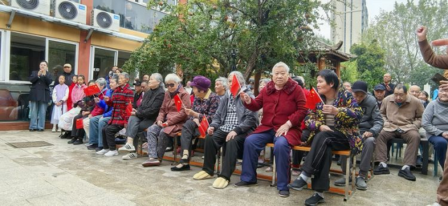 最后,全体演职人员、雅颐老年公寓医护人员与在场老人们起身站立,共同举起手中的小国旗,齐声高唱《歌唱祖国》。激昂雄壮的歌声回荡在公寓大厅,老人们脸上洋溢着自豪与喜悦,也为本次慰老演出画上了圆满的句号。演出结束后,老人们纷纷表示,这场演出既好看又暖心,让他们感受到了敬老月的关怀与社会的温暖。