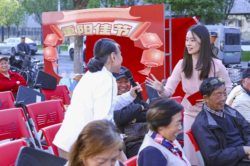 除了精彩的文艺节目,活动特别设置的互动环节更是妙趣横生。“送祝福”环节,大家纷纷对身边的老年朋友表达了美好祝愿;“重阳知识问答”则让长者在趣味挑战中重温传统习俗。现场准备的40份互动礼品,承载着社区对老年朋友们最真挚的节日祝福与关怀。