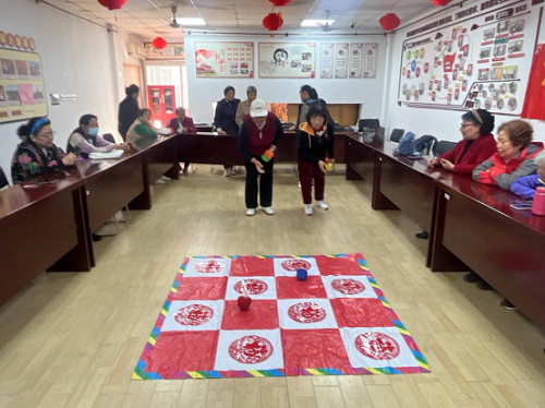 随后的“投福纳吉”趣味游戏环节将现场气氛推向了高潮。长者们兴致勃勃地投掷沙包,每一次“纳福”都引发阵阵欢声笑语,每位参与的长者都收获了一份节日的喜悦和小礼品。