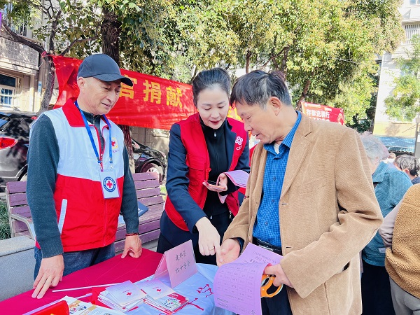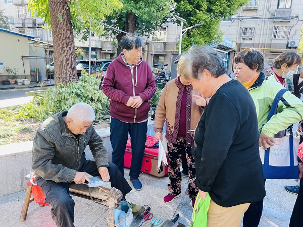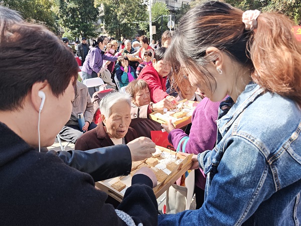 活动现场分区有序,气氛热烈。重阳文化体验区内,社区工作人员为现场老人送上重阳糕,大家饮菊花茶、制作茱萸香囊,感受传统节俗魅力;家风家训展示区展出了由居民提供的家风故事和手抄报,引来众人驻足观看。便民服务区更是人头攒动,来自共建单位的志愿者们为居民提供了免费理发、磨刀、艾灸、义诊、法律答疑等实实在在的服务,让老年人在家门口就能解决生活小难题。