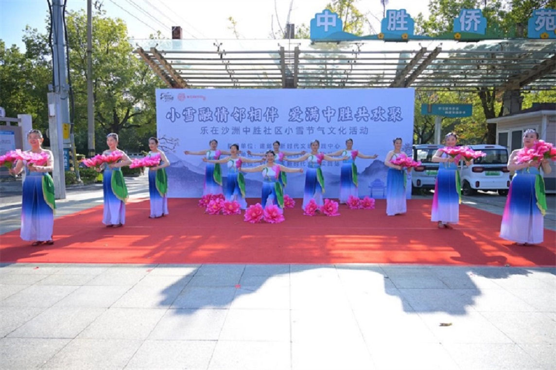 为传承中华优秀传统文化,丰富居民精神文化生活,营造温馨和谐的社区氛围,小雪时节来临之际,11月11日南京建邺区沙洲街道中胜社区新时代文明实践站开展了“小雪融情邻相伴,爱满中胜共欢聚”主题活动。活动现场舞台演出精彩纷呈,志愿服务贴心惠民,为居民带来一场文化与服务交融的冬日盛宴。