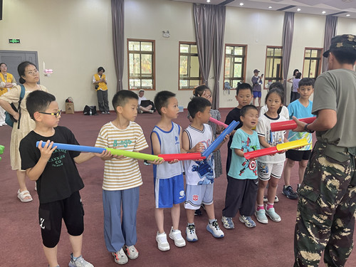 “小小军事训练”模拟任务让青少年们体验了军人训练的艰辛。他们穿越障碍赛道,切身感受到军人守护国家的不易,一名参与者表示,跨过障碍时更能体会到军人的伟大。此外,活动还设置了风采展示环节,孩子们通过自我介绍、诗朗诵、唱歌等形式,展现了新时代青少年的朝气,也加深了彼此之间的交流。