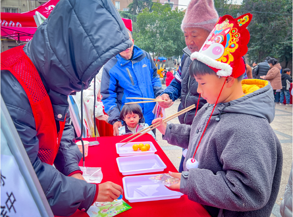 七大闯关任务聚焦“实用技能+理念传递”。“旧物焕新?福饰DIY”中,快递盒、旧纸张等闲置材料5分钟变身福字收纳盒、元旦装饰。“粮食称重挑战”以成人50克、儿童30克的1人1餐标准比拼手感,搭配元旦剩菜创意制作实操妙招,让惜粮有度落地生根。“冬藏干货识物赛”“家庭储粮规划师”环节,居民在辨识干货、规划储存中学会实用技巧,实现“闯关即学艺”。