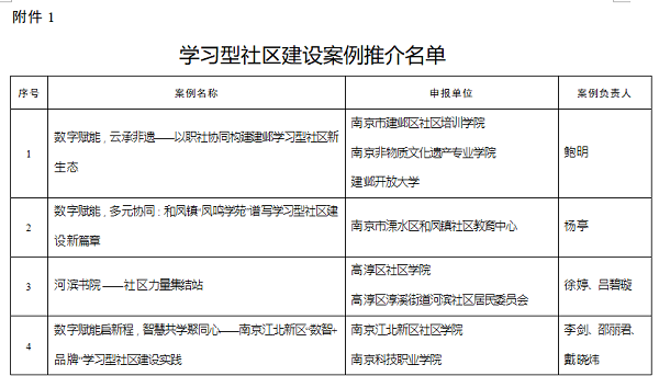 近日,江苏省教育厅公布了学习型社区建设案例和课程征集工作推介名单,建邺区推荐的两个项目成功入选,展现了该区在推动终身教育与文化传承深度融合方面的创新成果。