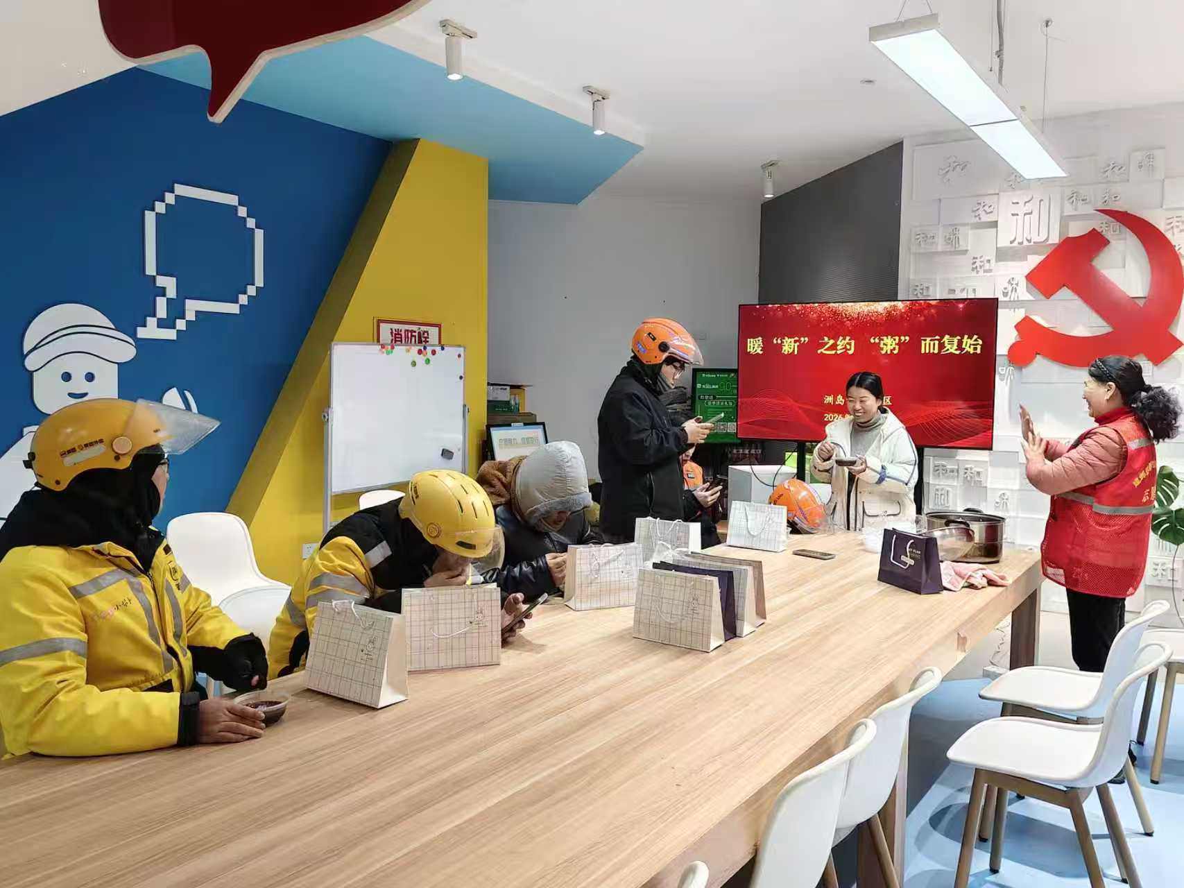 腊月初八,寒意渐浓,而洲岛和园社区的宁小蜂驿站内却暖意融融。为深化对快递员、外卖骑手等新就业群体的关怀,持续推进 “江岛暖蜂” 行动,社区于26日上午精心策划了 “暖‘新’之约,‘粥’而复始” 腊八节主题活动,用一碗碗热气腾腾的腊八粥、一份份实用贴心的暖冬礼包,为户外劳动者们送上最真挚的节日问候与冬日暖意。