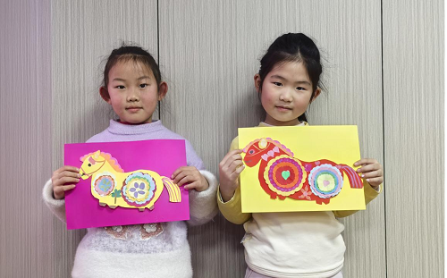 活动中,大学生志愿者用生动有趣的语言为孩子们展开讲解,介绍非遗知识和年俗文化,传授剪纸技艺,并手把手示范折纸、勾画、裁剪的技巧。在大学生志愿者的耐心指导下,一匹匹可爱灵动的小马在孩子们手中跃然而出,每一幅都透着童真与创意。彩纸翻飞间,孩子们裁出创意,为新春佳节注入了别样的文化底蕴和童真童趣。