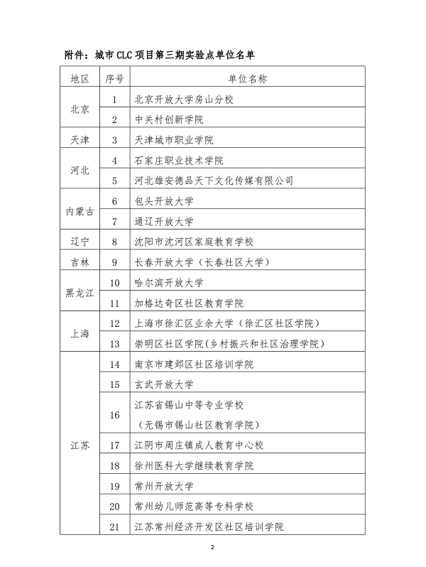 近日,中国成人教育协会公布“城市社区学习中心(CLC)能力建设项目”第三期实验点单位名单,南京市建邺区社区培训学院再次成功入选。