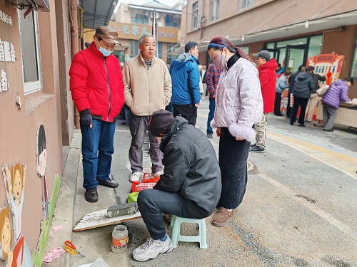 “爱心便民岗”的两位“手艺人”备受居民欢迎。爱心理发摊位上,志愿者理发师手法娴熟,为老人们剪出精神矍铄的新发型;便民磨刀区更是热闹,师傅用专业工具将居民们带来的各式刀具打磨得锋利如新,解决了大家生活中的“小麻烦”,传递了实实在在的便利。