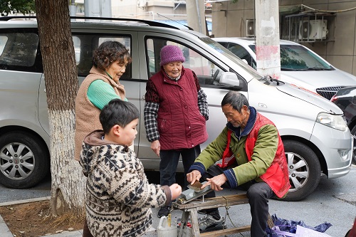 在“老行当便民服务区”,辖区的公益匠人团成为广场上的“人气担当”。磨刀、修伞、理发、缝补等传统手艺摊位前,居民们有序排队,一边唠家常一边等候服务。通过让老手艺焕发新活力,社区真正实现了“志愿不出格、服务零距离”,让便民服务更有温度、更接地气。