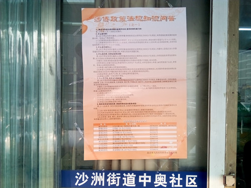 2013年12月6日,中奥社区在辖区内各大小区宣传栏张贴关于涉侨政务的法律法规,让老百姓们能够更认真的了解到涉侨方面的知识,更好得关爱涉侨人员。