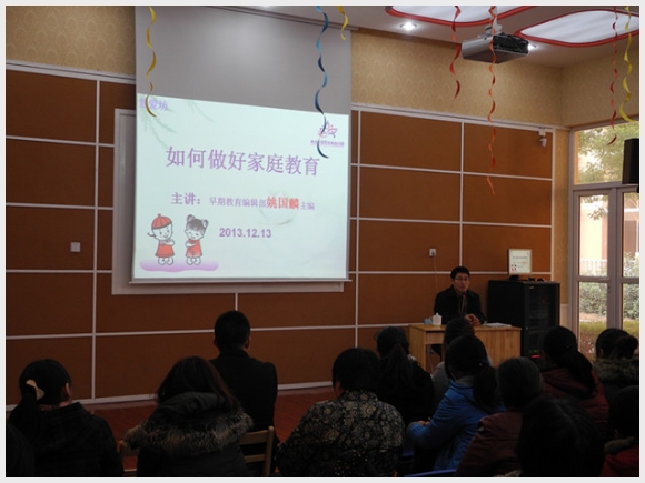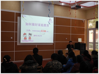 为了更好地开展家园共育,提高家长对幼儿园工作的理解、支持和配合,南京市莲花北苑幼儿园邀请《早期教育》编辑部姚国麟副主编到园针对“如何做好家庭教育”进行讲座,姚老师用亲切、幽默的语言,绘声绘色地与家长们沟通、交流,将正确、优秀的家庭教育观念传达给家长们,得到家长们的一致好评。