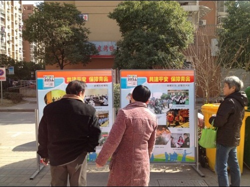 近期,莲花北苑社区在社区门口陈列建邺区各街道、公安分局、安监局、教育局等条口宣传展板,做好“共建平安、保障青奥”宣传,提升人民群众安全感。