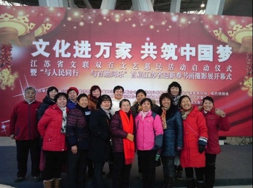 2014年1月18日上午,莲花北苑社区组织辖区15名居民到江苏省科学历史文化中心参加“文化进万家 共筑中国梦”——江苏省文联双百文化惠民活动启动仪式暨“与人民同行 与百姓同乐”首届江苏省迎新春书画摄影展开幕式。