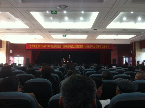 2014年1月22日下午,沙洲街道成功举办2013年度-2014年度基层党员干部冬训动员大会,街道机关全体人员及各社区党员代表400余人参加。会上,市宣讲团成员对十八届三中全会和市委十三届七次全会精神作辅导报告。