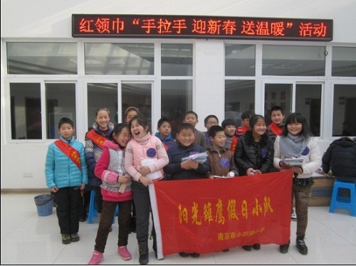 2014年1月27日,莲花北苑社区组织青少年开展红领巾“手拉手 迎新春 送祝福”活动。此次参加活动的青少年不仅有小西湖小学的雏鹰假日小队成员,也有住我们莲花北苑社区的流动留守儿童。这些流动留守儿童有平时很少和爸妈在一起,寒假后前来和爸妈团聚。他们的家庭经济条件有限,学习环境也不同,雏鹰假日小队成员用平时省下的零花钱买了学习用品,赠送给流动留守儿童们。他们也手拉手一起玩游戏、聊天,很快就相处融洽了。通过这次的红领巾手拉手活动,让他们彼此结交为新好友,也促进了流动留守儿童融入社区新生活,让所有少年儿童同享蓝天、同享欢乐。