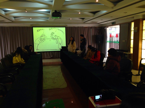 2014年第二届青年夏季奥运会八月份在南京召开,为了让每一位青奥会参与者,都能享受到热情周到、细致得体的服务。2014年2月19日上午,毗邻南京市奥体中心主场馆的月安社区,组织全体社工和居民朋友开展一场关于接待外国家庭的规范和交际外语知识讲座。此次讲座由社区大学生志愿者开讲,讲座内容包括简单的接待外国友人的问候、交际、一些名胜景区、特产、特色小吃等英语以及餐桌文化、服装穿着、各国的忌讳知识等,让大家受益匪浅。