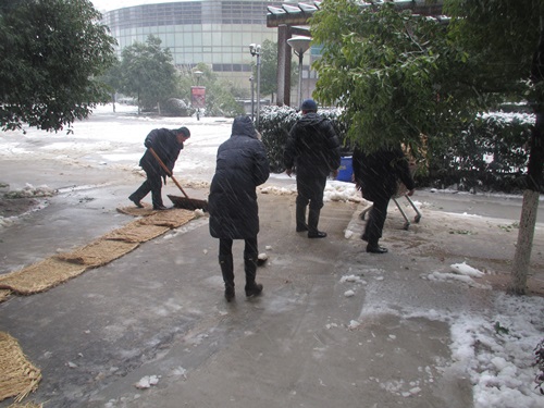 漫天雪花把我们的城市装扮美丽,同时也给道路交通和居民出行带来了不便,2月18日一早寒风瑟瑟,社区书记组织所有工作人员及物业公司人员开展小区扫雪工作,对小区的主要路段积雪进行集中清扫。大家拿着扫帚、铁锹、推着雪车在小区内扫雪。天气很冷,不少人的脸和手都冻红了,但大家全然不顾,继续埋头清理,以确保老人和社区居民出行安全。经过大家的努力终于把各个楼前都铲出了一条通道,为小区的居民出行提供了方便。