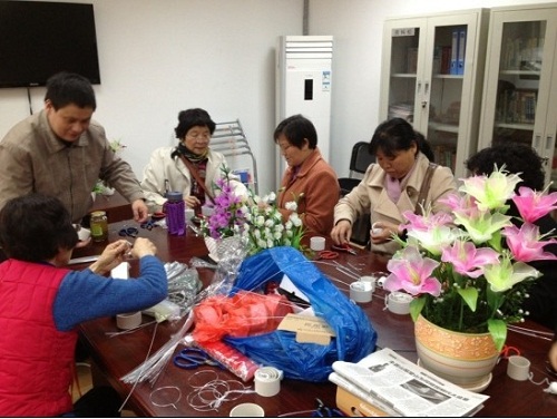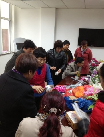 在前期邀请老师、购买材料等基础准备工作充分做好的前提下,莲花北苑社区丝网花培训班在2014年3月19日下午正式开课啦。第一批学员主要是辖区残疾人士,丝网花培训不仅充实他们的生活,陶冶他们的情操,也间接为他们开辟新的就业道路。教习的老师心灵手巧,对学员也超级耐心,在大家共同努力和配合下,一件件精美的作品就展现在大家面前。面对着自己做的作品,学员们很开心,也纷纷表示这样的培训很实用也很有成就感。