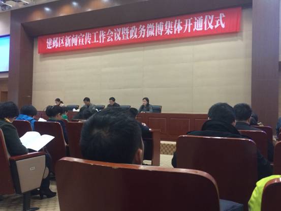 会议主要有五个议程:一是区委宣传部副部长徐凌介绍全区政务微博全面开通及政务微信开通情况;二是区委常委、宣传部部长汤志平对全区新闻宣传工作进行部署;三是区委副书记蒋蕴翔对全区新闻宣传工作暨政务微博管理提要求;四是新浪江苏政府事业部区域主管、政务微博培训讲师为大家介绍了“新浪政务微博管理与应用”;五是南京发布博主赵伊汉谈谈“南京发布运营的几点体会”。