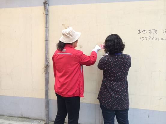 鹭鸣苑社区组织工作人员到凤鸣苑小区清理牛皮癣
