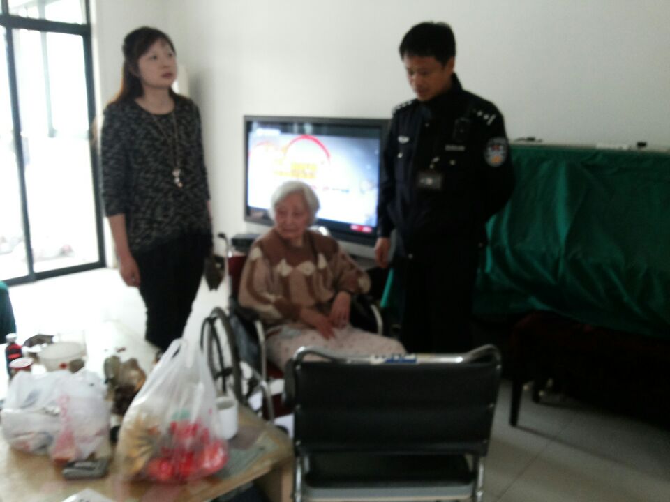 2014年4月10日,奥体社区居委会领导及警务室余警官受党委书记朱月飞的委托去清竹园看望高龄老人。该老人现年95岁,平时身体很好,因近日不小心摔了一跤导致行动不便。社区领导听说以后,带着水果前去慰问。经过简单的交谈之后,该户的确有很多生活不便的困难,社区领导决定在近期内派社区志愿者协助照顾老人,帮助他们度过难关。