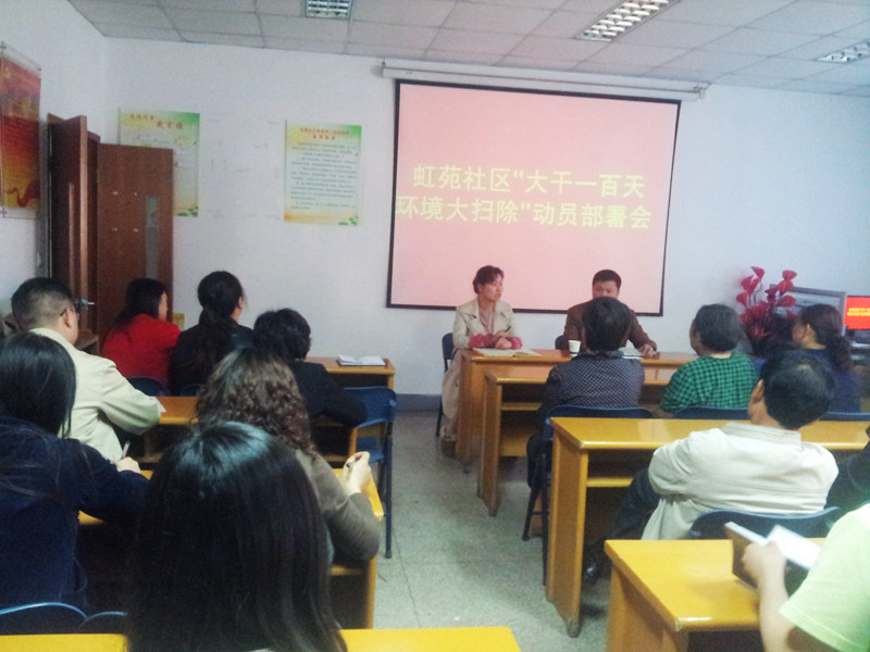 虹苑社区召开大干一百天,环境大扫除动员部署会