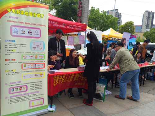 4月12日下午,中城社区在好邻居生活广场开展了妇联广场活动,现场设置了垃圾分类宣传资料取阅处及垃圾分类宣传咨询窗口,摆放了垃圾分类宣传海报。提供居民现场咨询,并指导居民如何分类。