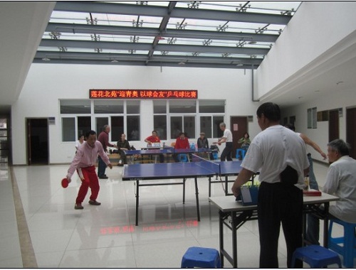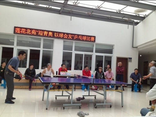 为丰富辖区居民的文体生活,增强居民的身体素质,2014年4月17日上午,莲花北苑社区组织辖区乒乓球爱好者在居委会活动大厅开展“迎青奥 以球会友”乒乓球友谊赛。友谊赛分男子单打和女子单打,其中男子单打24人报名参加,女子单打10人报名参加。技艺精湛的他们经过激烈的角逐,最后决出男子冠军1名,亚军2名,季军3名;女子冠亚季军各1名。