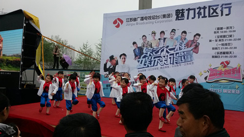 2014年4月19日下午2点整,江苏省广播电视总台(集团)来到积善社区,在广场举办“魅力社区行”活动。现场人头攒动,热闹非凡,虽然下着细雨,哆唻咪幼儿园的小朋友们还是前来表演了《学习雷锋好榜样》,他们活泼生动的表演赢得了在场观众的阵阵掌声;老师们也一展他们曼妙的身姿,舞出了一曲《蓝色多瑙河》;陶行知小学低年级的学生们也赶来了,他们表演的是情景剧《青奥梦》,表达了他们对此次南京青奥会的憧憬和感想。