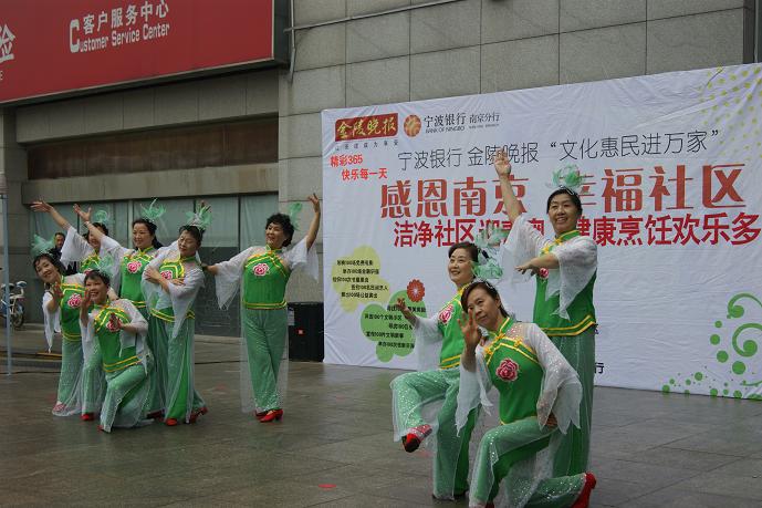2014年4月27日,奥体社区联合金陵晚报在社区南门广场开展“洁净社区迎青奥、健康烹饪欢乐多”的活动。活动内容分为文艺表演、青奥知识问答、民生下社区(磨刀、低价果蔬)、烹饪比赛等。文艺表演精彩纷呈,青奥知识现场抢答激烈,居民们对磨刀和低价果蔬下社区特别欢迎,磨刀师傅从活动开始到活动结束一直在不停地忙着。最热闹的要数烹饪比赛了,七位参赛选手从家里带来了事先准备的原材料,现场操作,围观的人喜笑颜开,等着开锅品尝,一道剁椒鱼头嬴得了大家的好评,最终以第一名胜出。