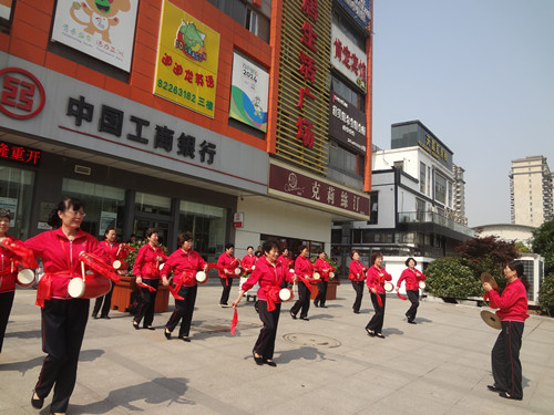 2014年4月30日上午,苍山路社区喜迎青奥、宣传青奥,在好邻居广场组织老年腰鼓队表演了精彩的文艺节目。