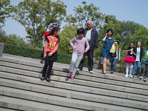 5月3日上午,积善社区关工委常务副主任刘善良和“五老”志愿者叶兆金带着小区孩子们来到南京绿博园湿地,寻找青蛙与蛙卵,进行《青蛙生存状况》课题的实地调查。