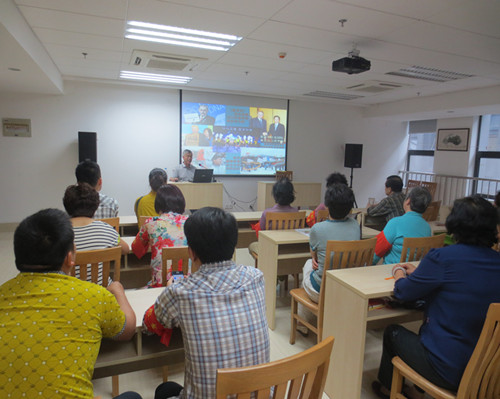 青奥会即将来临,为了更好的让社区的青奥志愿者们做文明志愿者,礼仪南京人,在建邺区文明办的组织下,中胜社区在街道社教中心开展文明礼仪宣讲活动。老师对南京的人文历史、青奥会的项目和场馆等一一做了介绍,大家听得津津有味。随后老师还介绍了很多中国传统礼仪以及国际礼仪,认真的志愿者们都用心聆听记录。随着知识越来越多的传输给大家,老师的讲课也接近了尾声,但是大家都还没有走的意思,老师就又对南京的城市规划和旅游点进行了详细的解说,大家都还意犹未尽,很多人找到老师拷贝课件,说回去巩固,并且传播青奥知识给周围人,让大家做好东道主。
